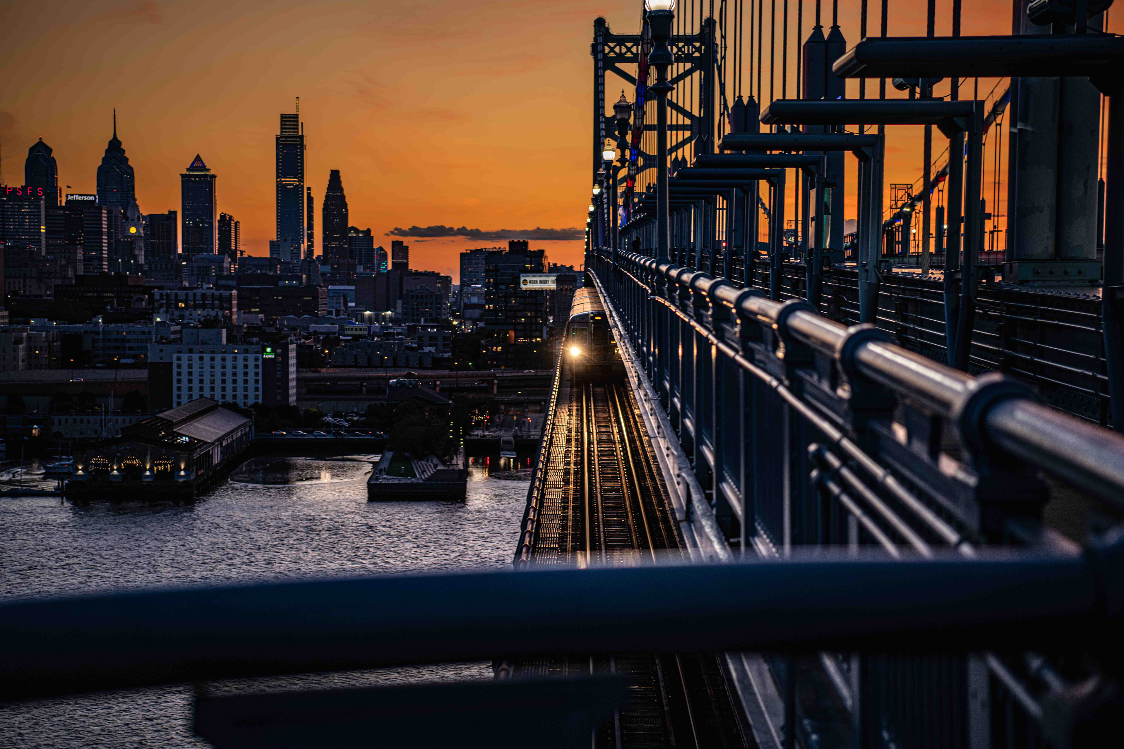 CSX Transportation #335, a GE AC4400CW. These heavy-haulers are the workhorses of the East Coast, often pulling coal or intermodal freight through the Philly corridor. A masterclass in textures. The weathered blue paint against the rusted orange structural beams uses a "complementary color" scheme (orange and blue) that naturally draws the eye. The tight crop on the number "335" turns a piece of machinery into a graphic art piece.