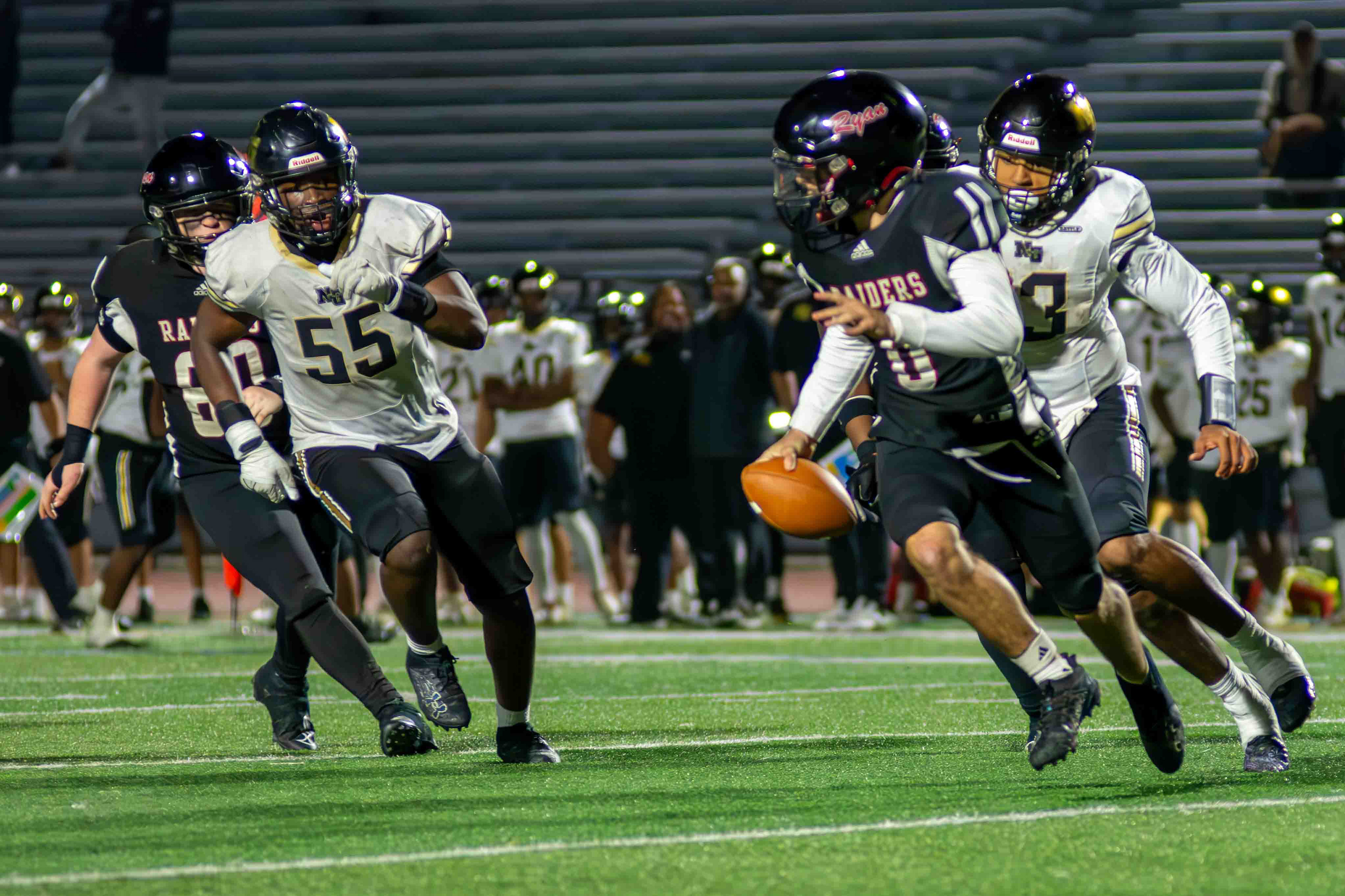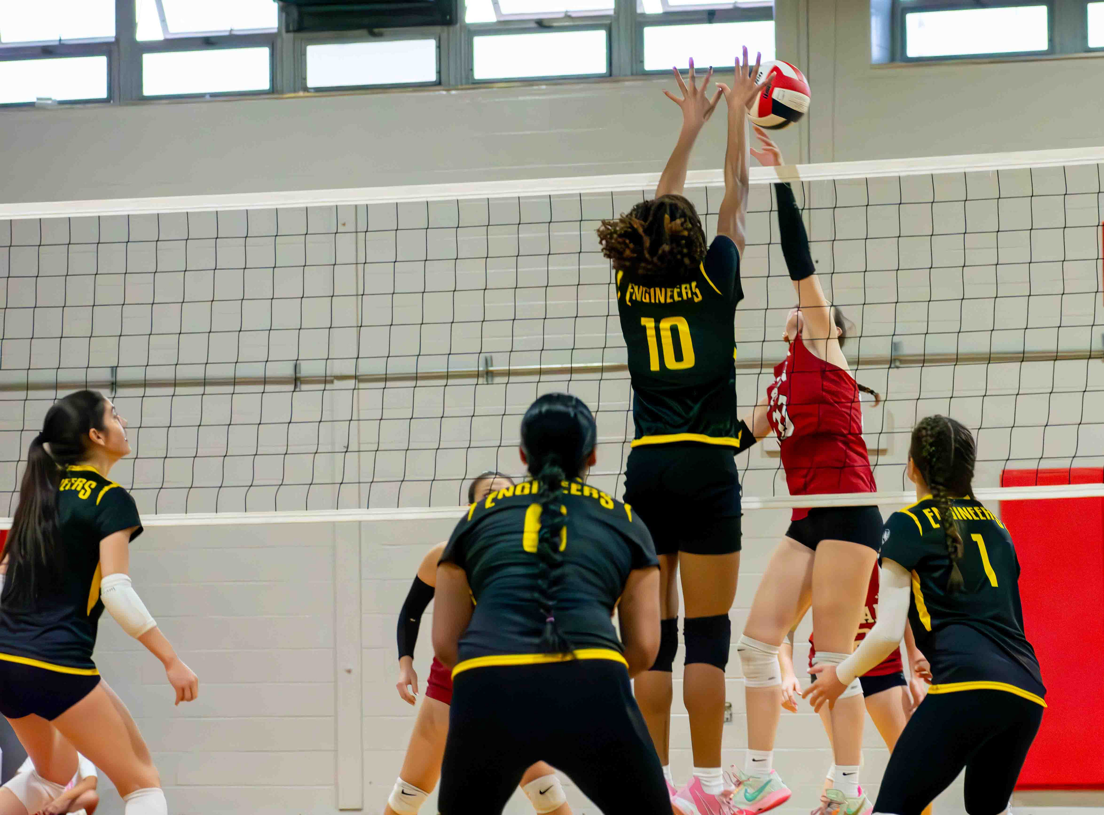 "Timing is everything. This shot captures the exact millisecond of the tip-off, frozen in mid-air. Why it’s captivating: * Technically: Shooting fast action in a high school gym is notoriously difficult due to cycling artificial lights and low-light conditions. This image maintains a tack-sharp focus on the players' hands and the ball, using a high shutter speed and wide aperture to isolate the subjects without losing detail to digital noise.The verticality of the composition creates a sense of monumental scale. The symmetry of the two opposing players reaching for the same goal—framed perfectly against the American flag and the gym banners—tells the story of the entire game in a single frame.
