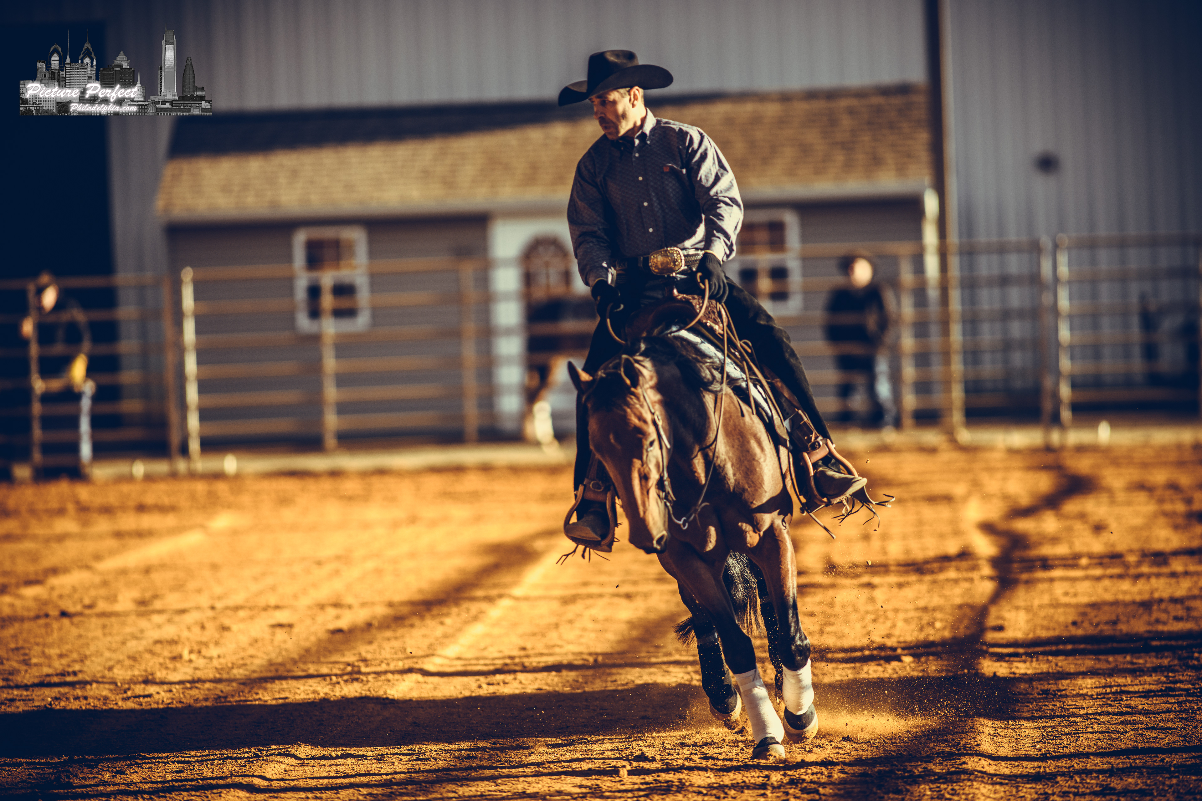 Power and Grit. A cowboy executes a sliding stop in a beam of natural arena light. Why it’s captivating: * Technically: Freezing the explosion of dirt and dust requires precise timing and a very fast shutter. The camera's autofocus successfully tracked the horse through a cloud of debris, which is a testament to the photographer's skill in chaotic environments.. The lighting is the star here. The 'Chiaroscuro' effect—the dramatic contrast between the dark background and the horse illuminated by a single shaft of light—gives the photo the feel of a classical Renaissance painting rather than a standard sports snap..